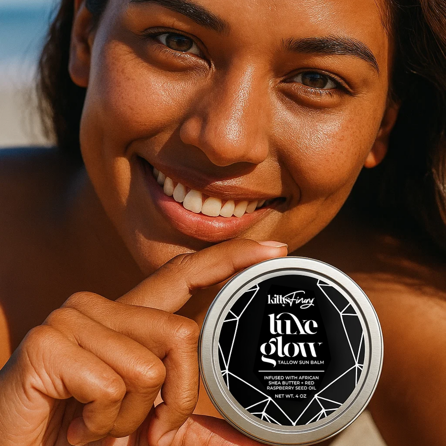 Our LuxeGlow Sun Balm contains grass-fed tallow, which is an animal-derived ingredient. It’s ethically sourced from responsibly raised farms to ensure premium quality and sustainability.
